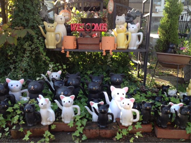 なんとこの神社、招き猫の発祥の地らしく境内にねこがいぱーい!!