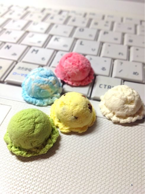 えへへ。コメントで、こないだ猫が粘土で作ってたアイスについてコメントいただいたので