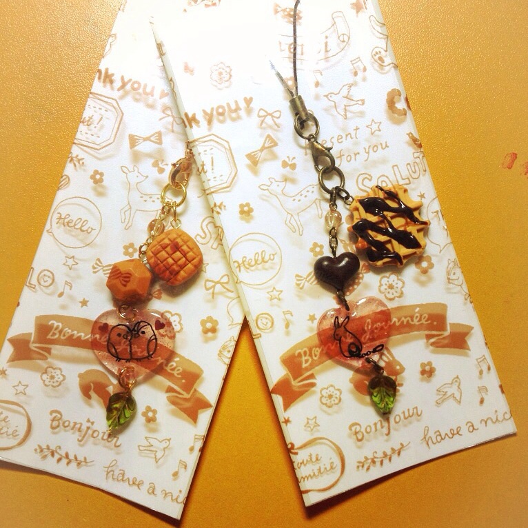 ワッフルすみれさんと、きゃらめるリコラさんに、ホワイトデーのお返しでちょっとしたお菓子とゴミのような手作りストラップをプレゼントさせていただきましたー!*^^*