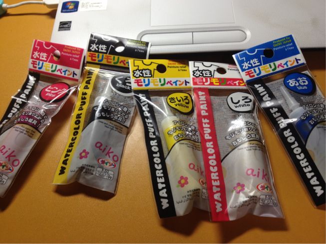 100均一で売ってた、”アイロンでもっこりもこもこ盛り上がる絵具”です!