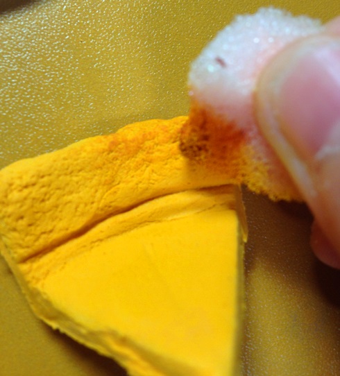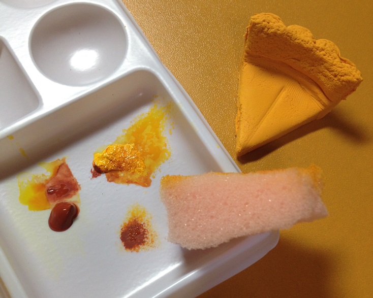 ちょっと黄色大目・・というか、生地に近めの黄土色を、スポンジにつけてぽんぽんするわけですが、