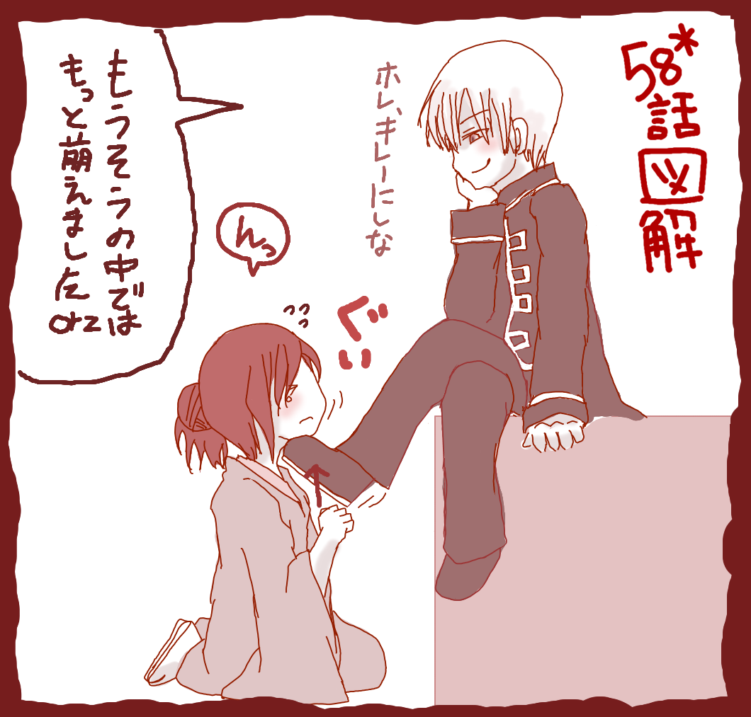 はい、ただたんにニヤニヤしてる銀さんが描きたかっただけです。なかなかうまくニヤニヤを表現できたような気がしなくもないような気がしました。あれ、作文。
