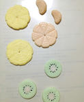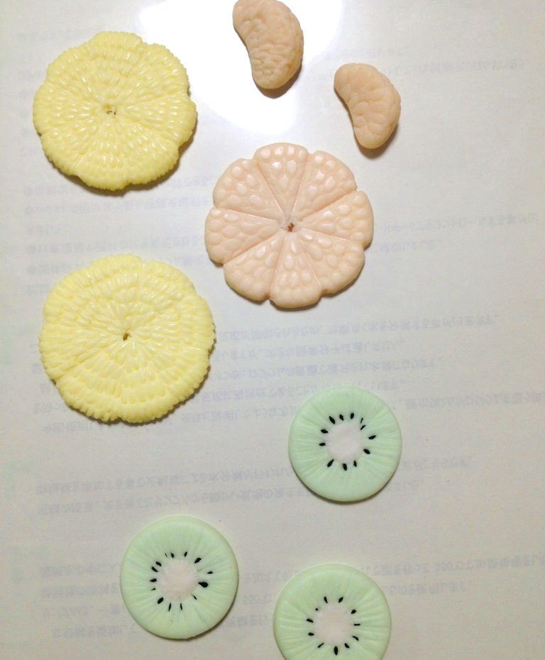 オレンジとレモンの輪切りと、キウイのつもり。種もちゃんと別粘土で作って埋め込みました。