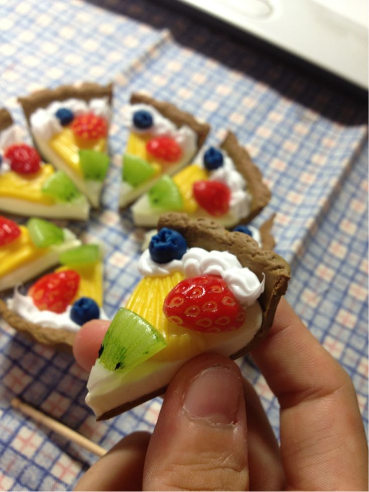 キウイはすけるくんでできてます。あとのフルーツが樹脂粘土で、タルト部分が軽量樹脂粘土。