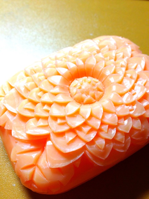 先生のお手本を思い出しながらもりもりで練習石鹸に掘ってみましたえへへ!